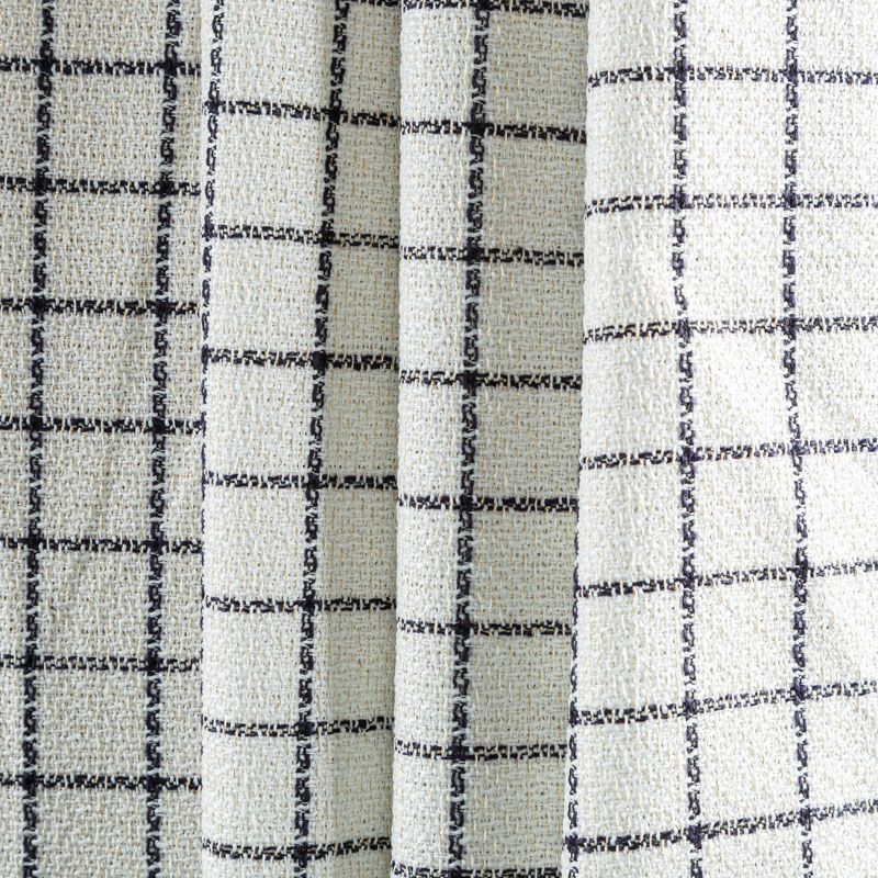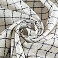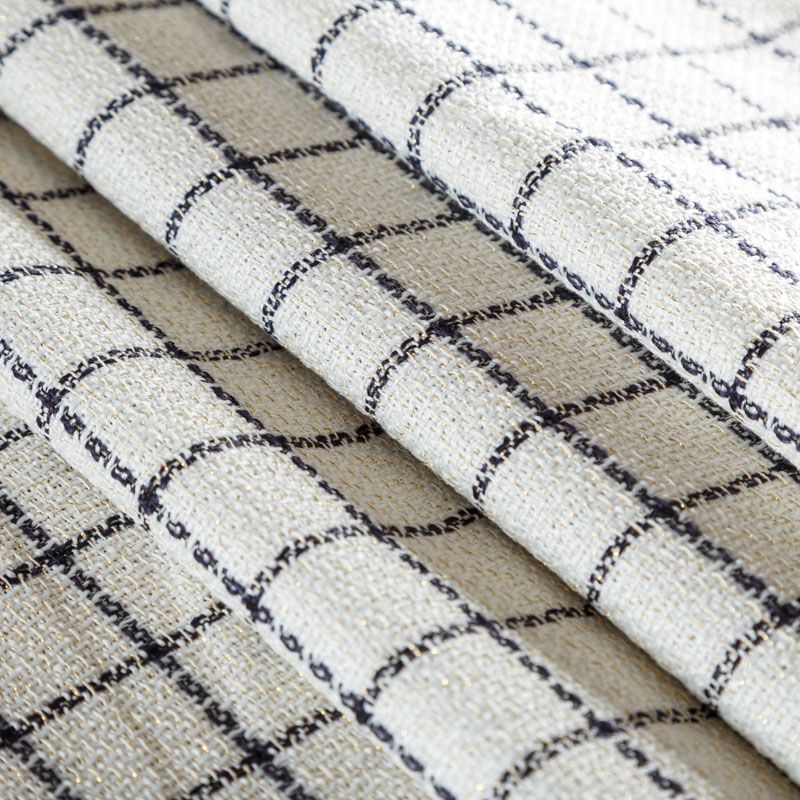Мягкая, пластичная и объемная ткань, с разреженной и рельефной вывязанной структурой. Твид в стиле Шанель буквально соткан из различных по толщине, текстуре и цвету нитей, образующих рисунок в виде клетки. В плетение добавлена блестящая золотистая люрексная нить. Твид идеально подходит для пошива платьев, юбок, жакетов, легких пальто, эффектных бомберов и курток.