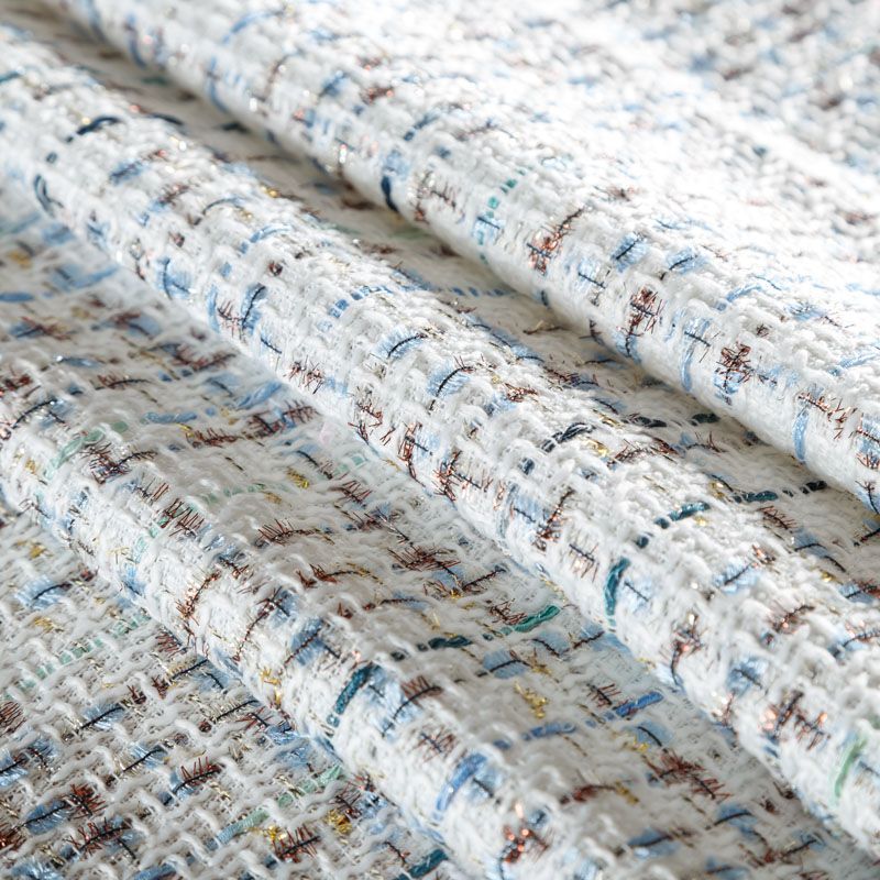 Переплетение разноцветных нитей делает эту ткань универсальной, и в тоже время оригинальной. Полотно плотное, но очень мягкое. Теплое, комфортное. Плетение рыхлое, поверхность фактурная, поэтому изделия выглядят достаточно объемно. Подойдет для пошива костюмов с юбкой, жакетов, облегченных пальто.