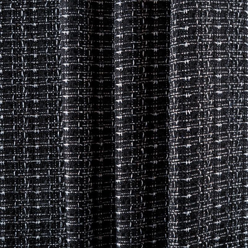 Мягкая, пластичная и объемная ткань, с разреженной и рельефной вывязанной структурой. Буклированный твид в стиле Шанель буквально соткан из различных по толщине и текстуре нитей, образующих рисунок в виде клетки. В плетение добавлена блестящая люрексная нить. Твид идеально подходит для пошива платьев, юбок, жакетов, легких пальто, эффектных бомберов и курток.