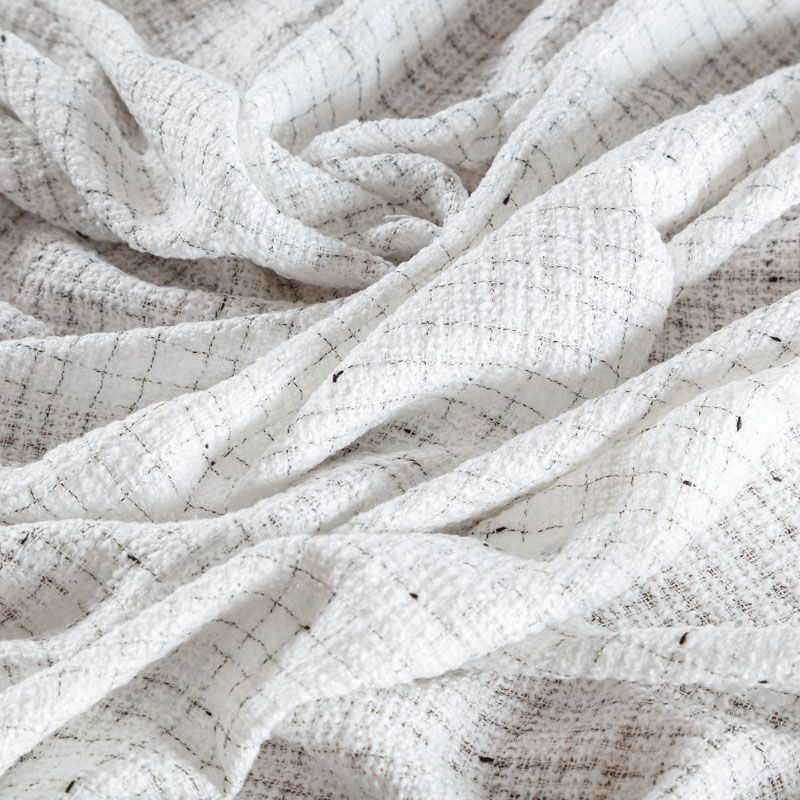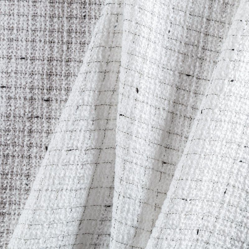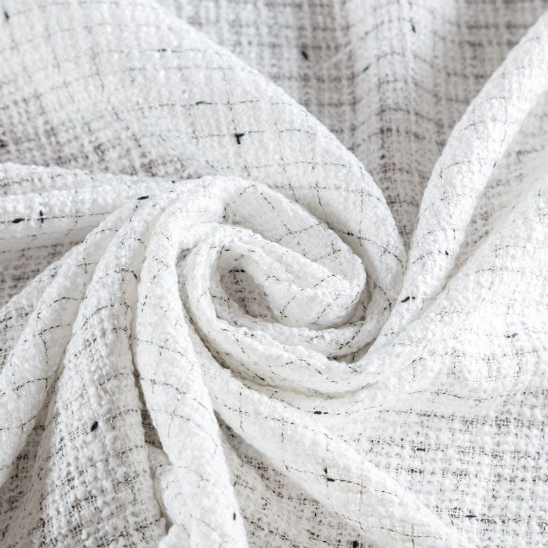 Мягкая, пластичная и объемная ткань, с разреженной и рельефной вывязанной структурой. Буклированный твид в стиле Шанель буквально соткан из различных по толщине и текстуре нитей, образующих рисунок в виде клетки. В плетение добавлена блестящая люрексная нить. Твид идеально подходит для пошива платьев, юбок, жакетов, легких пальто, эффектных бомберов и курток