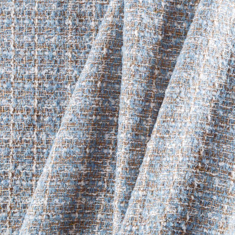 Мягкая, пластичная и объемная ткань с рельефной вывязанной структурой с добавлением хлопка. Буклированный твид в стиле Шанель буквально соткан из различных по толщине и текстуре нитей, образующих рисунок в виде клетки. Твид идеально подходит для пошива платьев, юбок, жакетов, легких пальто, эффектных бомберов и курток.