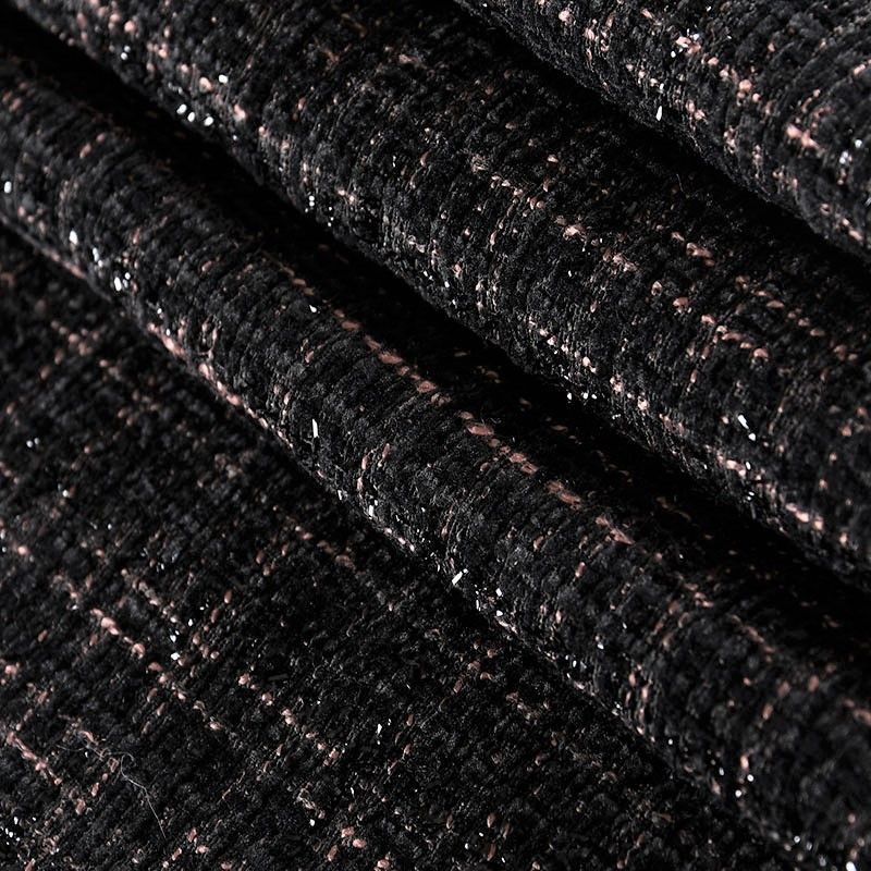Мягкая, пластичная и объемная ткань, с разреженной и рельефной вывязанной структурой. Буклированный твид в стиле Шанель буквально соткан из различных по толщине и текстуре нитей, образующих рисунок в виде клетки. В плетение добавлена блестящая люрексная нить. Твид идеально подходит для пошива платьев, юбок, жакетов, легких пальто, эффектных бомберов и курток.