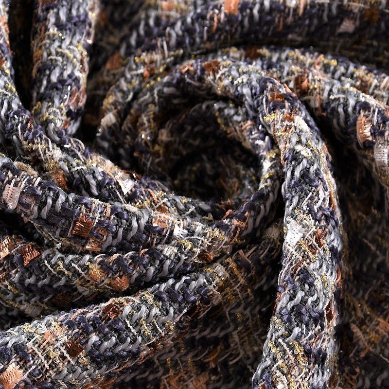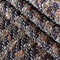 Мягкая, пластичная и объемная ткань, рельефной вывязанной структурой. Буклированный твид в стиле Шанель буквально соткан из различных по толщине и текстуре нитей, образующих рисунок в виде клетки. В плетение добавлена блестящая люрексная нить. Твид идеально подходит для пошива платьев, юбок, жакетов, легких пальто, эффектных бомберов и курток.