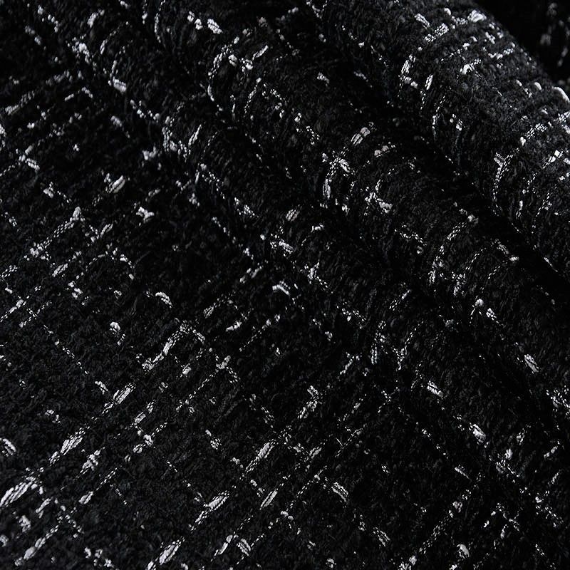 Мягкая, пластичная и объемная ткань, с разреженной и рельефной вывязанной структурой. Буклированный твид в стиле Шанель буквально соткан из различных по толщине и текстуре нитей, образующих рисунок в виде клетки. В плетение добавлена блестящая люрексная нить. Твид идеально подходит для пошива платьев, юбок, жакетов, легких пальто, эффектных бомберов и курток.