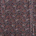 Плотная и мягкая ткань черного цвета с серо-коричневым узором пейсли, имеет саржевое плетение и характерный диагональный рубчик на поверхности. Отлично сохраняет форму, не сильно мнется и не деформируется в процессе эксплуатации. Красиво ложится в складки, поэтому прекрасно подойдет на длинные драпированные юбки и платья, на свободные брюки или шорты, топы.