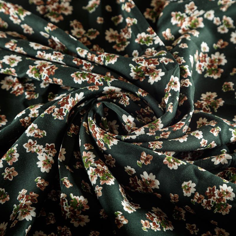 Твил-штапель 069-04610 темно-зеленый принтованный