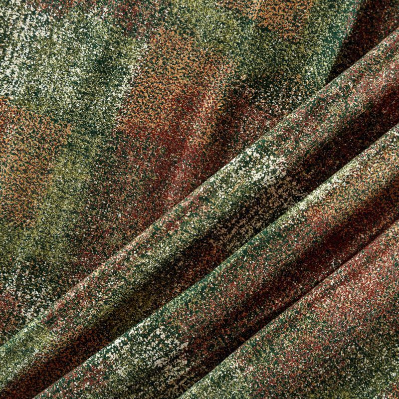 Плотная и мягкая ткань зеленого оттенка с абстрактным принтом, имеет саржевое плетение и характерный диагональный рубчик на поверхности. Отлично сохраняет форму, не сильно мнется и не деформируется в процессе эксплуатации. Красиво ложится в складки, поэтому прекрасно подойдет на длинные драпированные юбки и платья, на свободные брюки или шорты, топы.