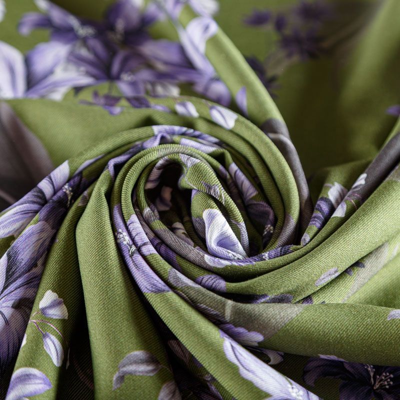 Твил-штапель 069-06477 зеленый хаки принтованный