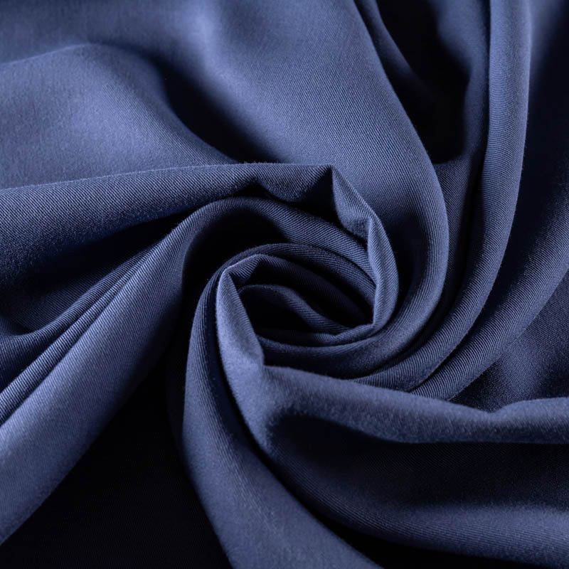 Мягкая ткань средней плотности, имеет саржевое плетение и характерный диагональный рубчик на поверхности. Отлично сохраняет форму, не сильно мнется и не деформируется в процессе эксплуатации.  Красиво ложится в складки, поэтому прекрасно подойдет на длинные драпированные юбки и платья, на свободные брюки или шорты, топы.