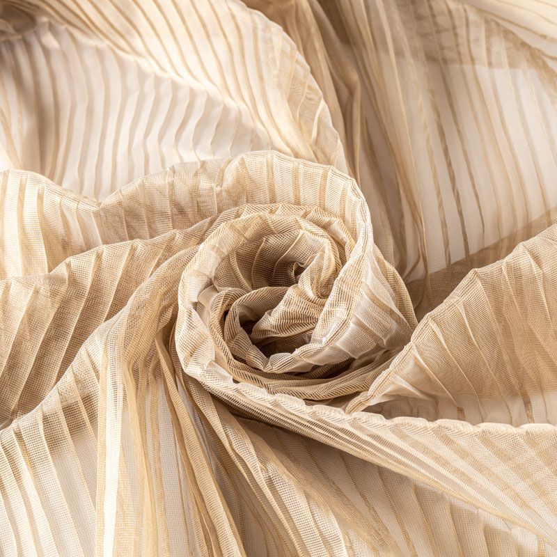 Модная сетка со складочками гофре отличается ровными и стойкими сгибами, которые хорошо держат свою форму. Тюль гофре  хорошо пропускает воздух и солнечный свет. Несмотря на его плиссированную основу, такой тюль практичен и прост в уходе - его не нужно гладить. Тюль смотрится очень стильно и оригинально и вполне самодостаточно, способен прекрасно вписаться как в классический, так и в современный интерьер, также отлично будет сочетаться с любой однотонной или жаккардовой портьерой, создавая неповторимый стиль. Размер складки 1,5 см.