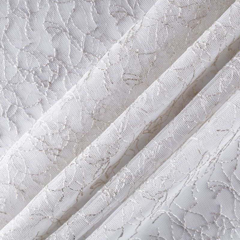 Сетка с вышивкой – это роскошный элемент дизайна, который преобразит любое помещение. Она отлично пропускает воздух, поэтому быстро сохнет после стирки. Прочная, ткань прослужит долго. Выдерживает большое количество стирок. Легкая, фактура ткани практически невесома, поэтому можно не опасаясь крепить ее даже на самый тонкий карниз. Вышивка в виде стилизованной паутинки расположена по всей высоте ткани, нижний край без утяжелителя, фигурный.