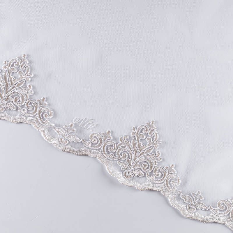 Сетка с вышивкой – это роскошный элемент дизайна, который преобразит любое помещение. Она отлично пропускает воздух, поэтому быстро сохнет после стирки. Прочная, ткань прослужит долго. Выдерживает большое количество стирок. Легкая, фактура ткани практически невесома, поэтому можно не опасаясь крепить ее даже на самый тонкий карниз. Сутажная элегантная вышивка приятного сливочного оттенка в виде "дамасков" расположена по всей высоте ткани, нижний край украшен вышитым фестоном, без утяжелителя, фигурный.
