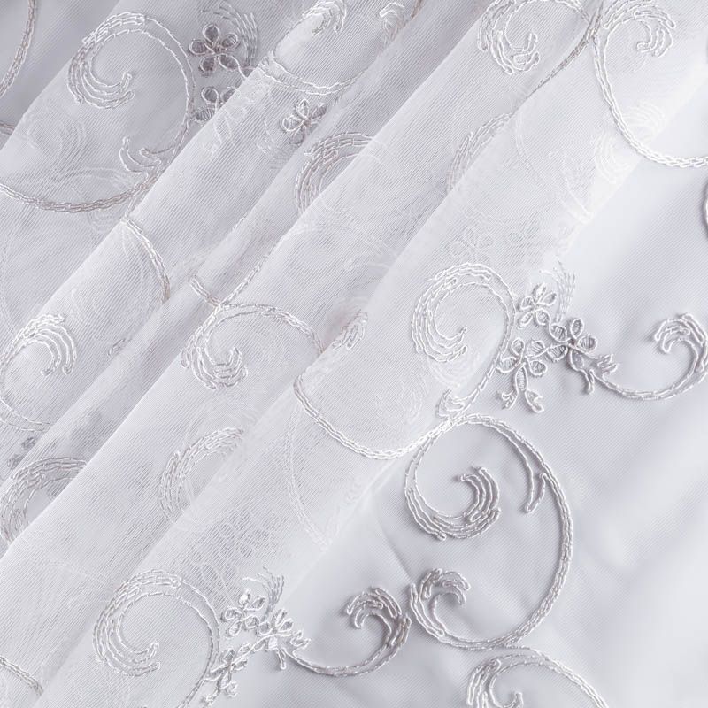 Сетка с вышивкой – это роскошный элемент дизайна, который преобразит любое помещение. Она отлично пропускает воздух, поэтому быстро сохнет после стирки. Прочная, ткань прослужит долго. Выдерживает большое количество стирок. Легкая, фактура ткани практически невесома, поэтому можно не опасаясь крепить ее даже на самый тонкий карниз. Сутажная элегантная вышивка в виде фантазийных завитков и вензелей расположена по всей высоте ткани, нижний край украшен купонной вышивкой, без утяжелителя, фигурный.