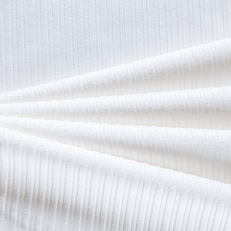 Итальянский костюмно-плательный вельвет из хлопка в молочном цвете. Очень приятный тактильно, поверхность бархатистая в широкий мягкий рубчик, не тянется, не просвечивает. Подойдет для пошива костюма, жакета, платья, сарафана, юбки или брюк.