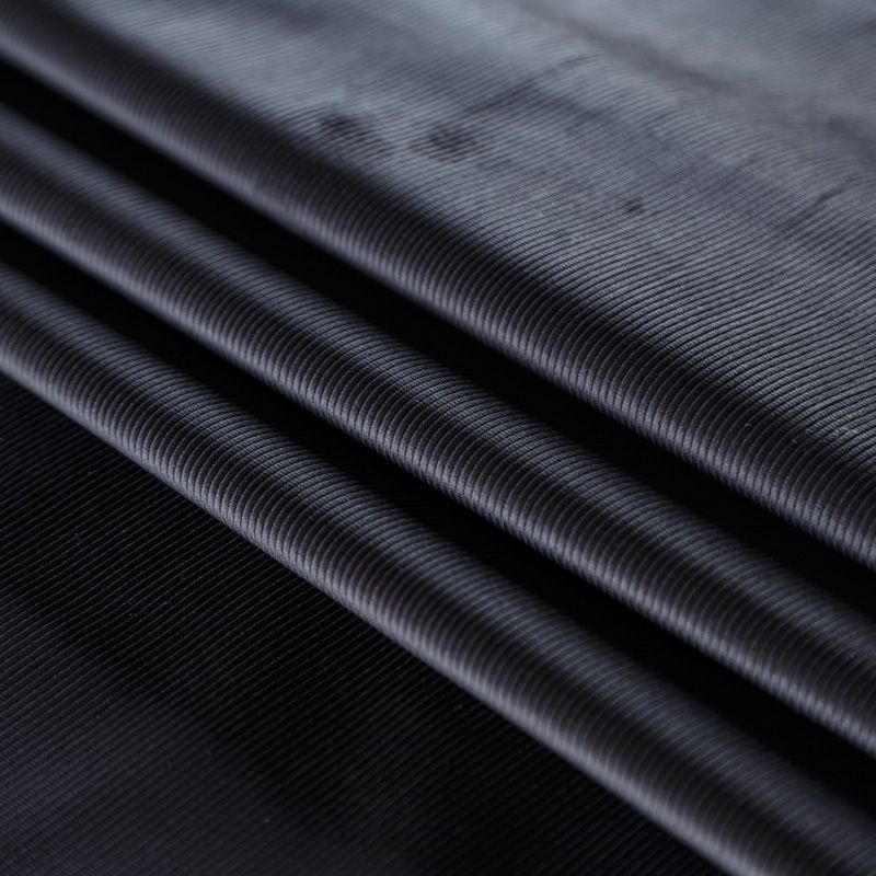 Итальянский костюмно-плательный вельвет из хлопка в черном оттенке. Очень приятный тактильно, поверхность бархатистая, рубчик средней ширины,  тянется за счет эластана в составе, не просвечивает. Подойдет для пошива костюма, платья, юбки, брюк, верхней одежды.