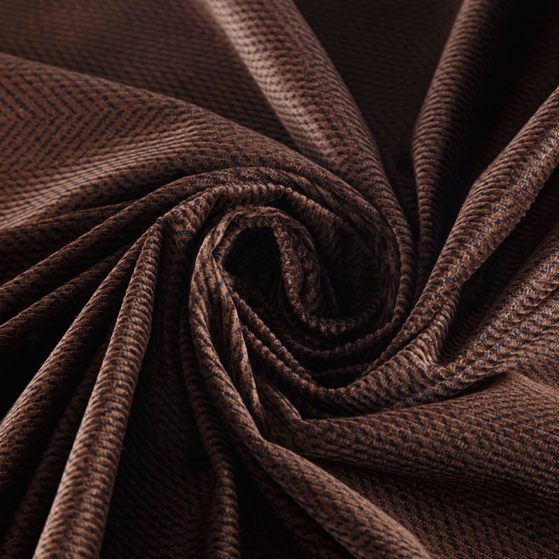 Итальянский костюмно-плательный вельвет из хлопка в шоколадном оттенке с характерным твидовым узором. Очень приятный тактильно, поверхность бархатистая, не тянется, хорошо драпируется и держит форму, не просвечивает. Подойдет для пошива костюма, жакета, платья, сарафана, юбки или брюк.