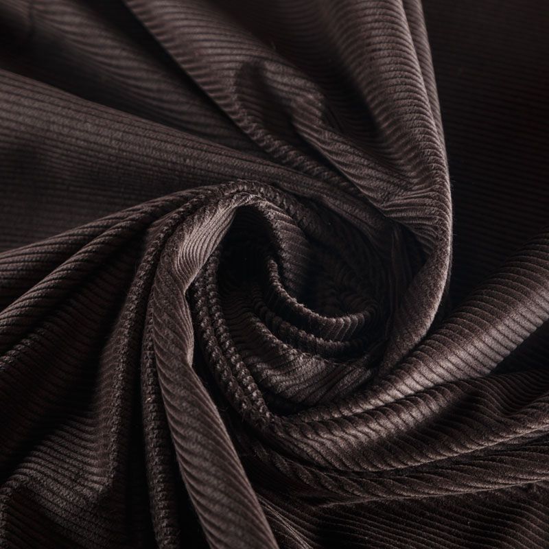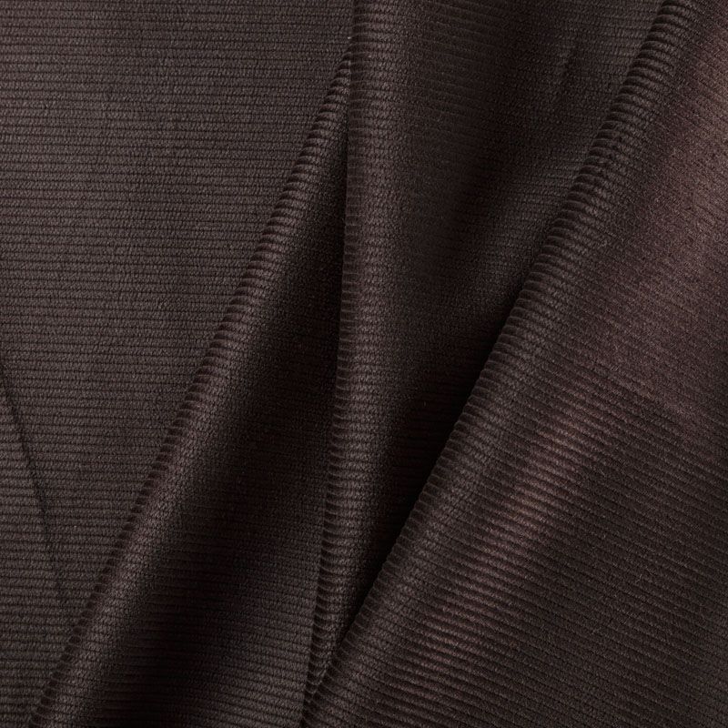 Итальянский хлопковый вельвет костюмно-плательной плотности шоколадного оттенка. Ткань имеет матовую фактурную поверхность в тонкий рубчик, ворс короткий, мягкий и приятный на ощупь. Хорошо драпируется и держит форму. Прекрасный вариант для пошива костюма, юбки, широких брюк, шорт, комбинезона, жакета, куртки или тренча.