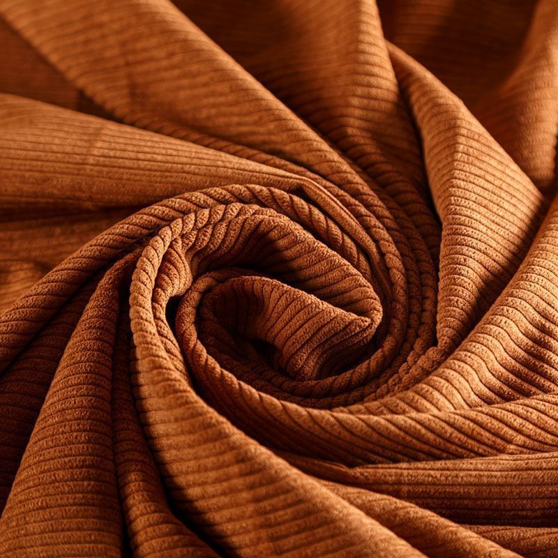 Плательно-костюмный вельвет средней плотности, но удивительно мягкий с матовым блеском и бархатистой поверхностью. За счет вытравки ворса лицевая сторона фактурная, в рубчик средней толщины. Ткань очень пластичная, хорошо и мягко драпируется, не мнется. Прекрасно подходит для пошива костюмов, жакетов, платьев, юбок, брюк, шорт, а также  для изготовления даже детской одежды.