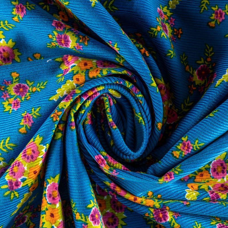 Вельвет К36-057 ярко-синий принтованный в Великих Луках