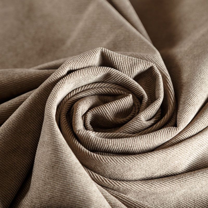 Костюмно-плательный микровельвет средней плотности. Очень приятный тактильно, мягкий, поверхность бархатистая, в тонкий рубчик, хорошо тянется за счет эластана в составе, не просвечивает. Подойдет для пошива костюма, платья, юбки, брюк, шорт, комбинезона, легкой куртки или жакета.