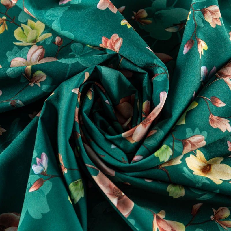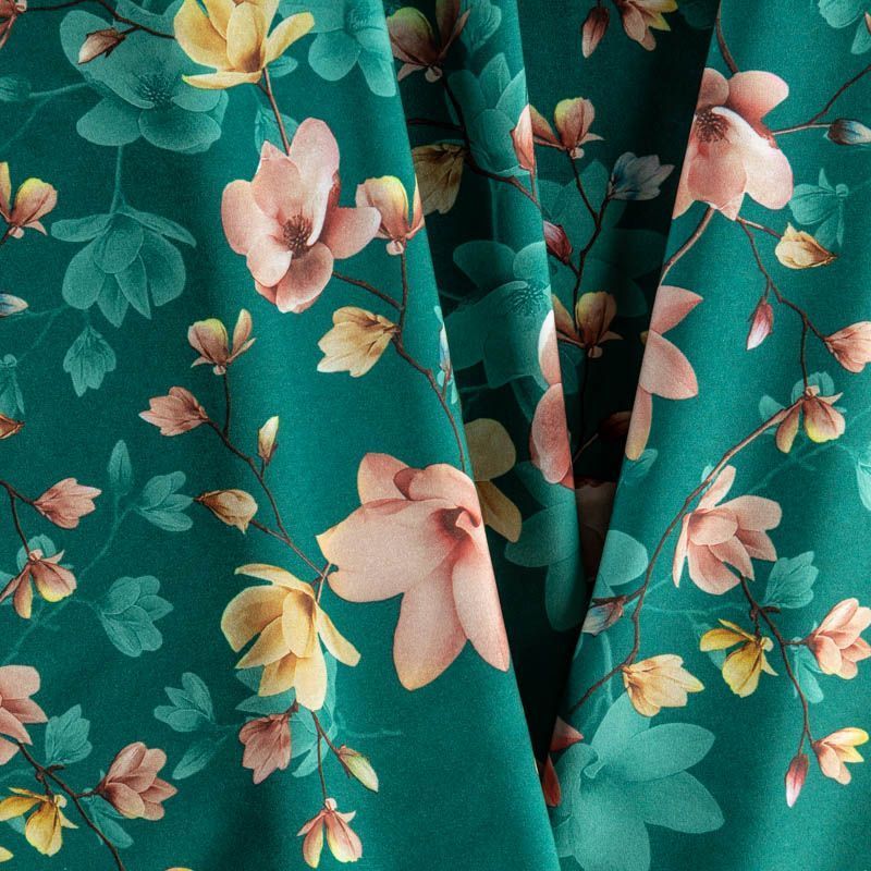 Легкая набивная ткань имеет высокую прочность, большую износоустойчивость. Ткань упругая, мягкая и хорошо драпируется, образует струящиеся складки. Идеально подойдет для пошива блуз, юбок, платьев, сарафанов.