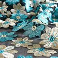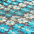 Итальянское полотно молочного цвета с геометрическим узором, вышитом на тонкой сетке с мелкой ячейкой, сетка мягкая, пластичная, матовая, не держит форму. Прекрасно подойдет для вечерних платьев, юбок, топов, бюстье. Эффектно смотрится на теле без подкладочной ткани, например, рукава платья.