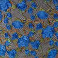 Шикарные розы василькового цвета, вышитые на чёрной сетке. Сетка имеет среднюю ячейку, за счет структуры немного тянется. Прекрасно подойдёт для платьев, юбок, брюк, шорт, топов, комбинированных платьев или отделки моделей одежды как для особых случаев, так на отдыхе. Рекомендуется подклад.
