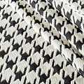 Плотная итальянская ткань молочного оттенка с жаккардовой структурой плетения нитей, образующих рисунок крупной гусиной лапки, украшенной люресовой нитью. Жаккард отлично держит форму, приятный и мягкий на ощупь. Прекрасно подойдет для пошива теплого костюма, жилета, пальто, бомбера.