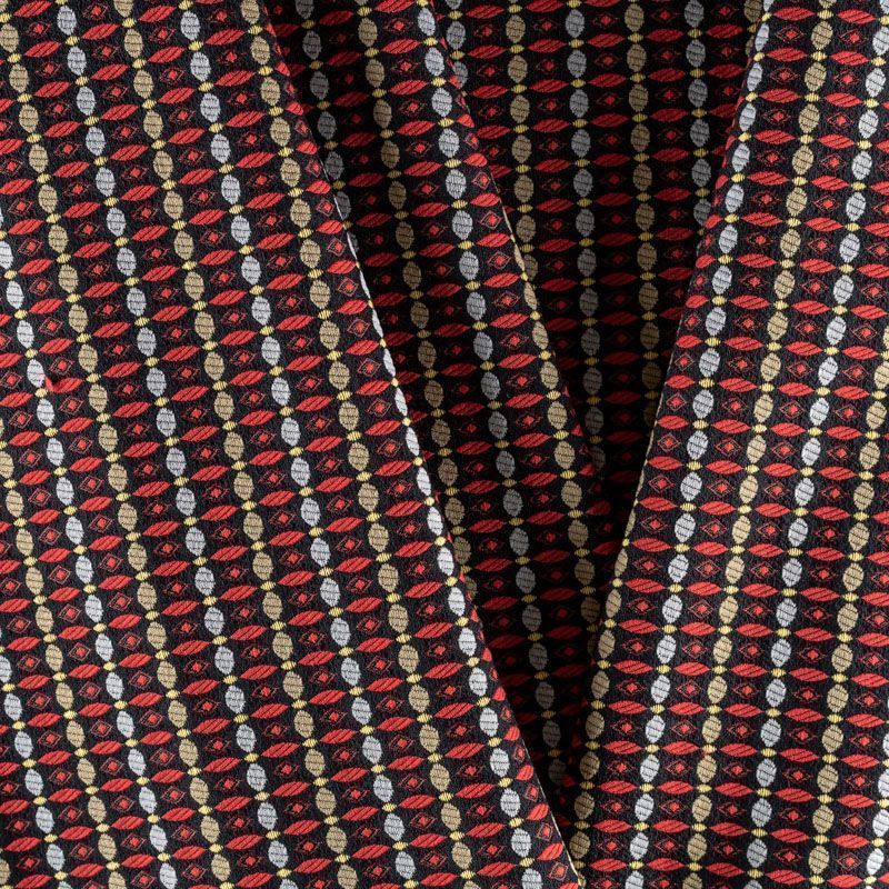 Мягкий хлопковый жаккард в черном цвете с ярким мелким абстрактным узором. Ткань пластичная, непрозрачная, приятная на ощупь, тянется за счет эластана в составе, форму не держит, но хорошо драпируется красивыми складками. Будет комфортна для пошива костюма, женственного платья, юбки или брюк.