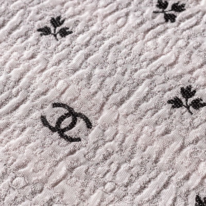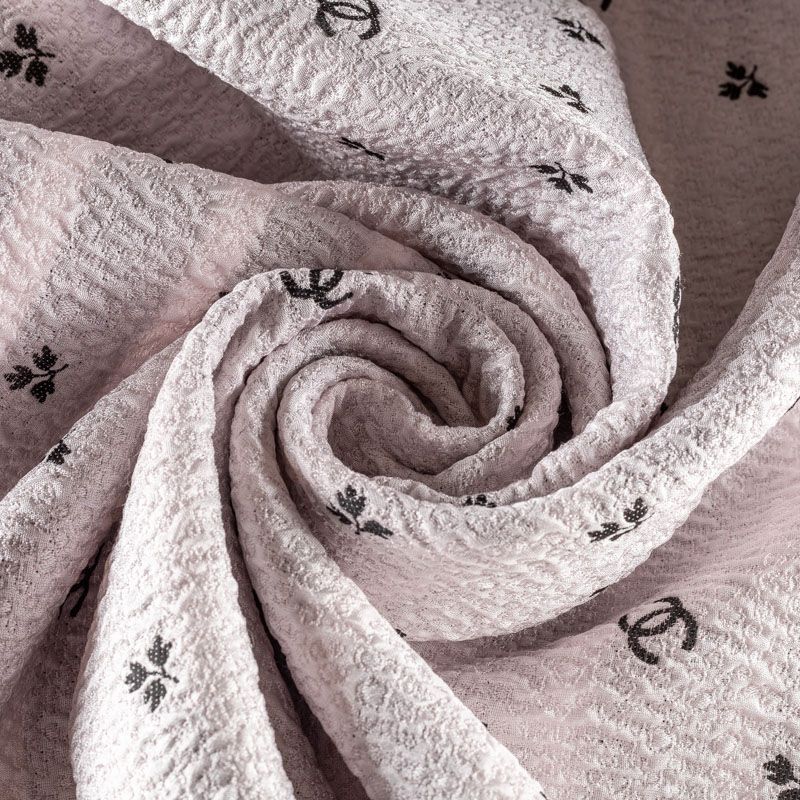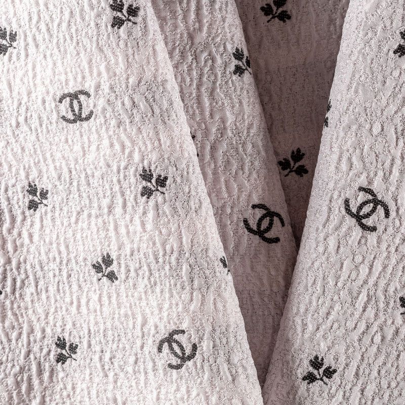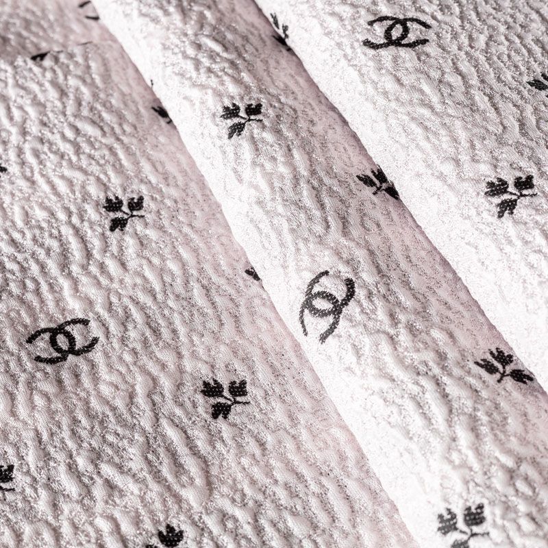 Итальянский жаккард с нежным дизайном. Ткань легкая, но плотная, поверхность со сдержанным блеском объемная и текстурная, хорошо драпируется и держит форму, не тянется, не просвечивает. Подойдет для пошива нарядных вечерних костюмов, платьев-футляров в стиле Dior, жакетов, топов, летних пальто, бомберов, юбок или шорт.